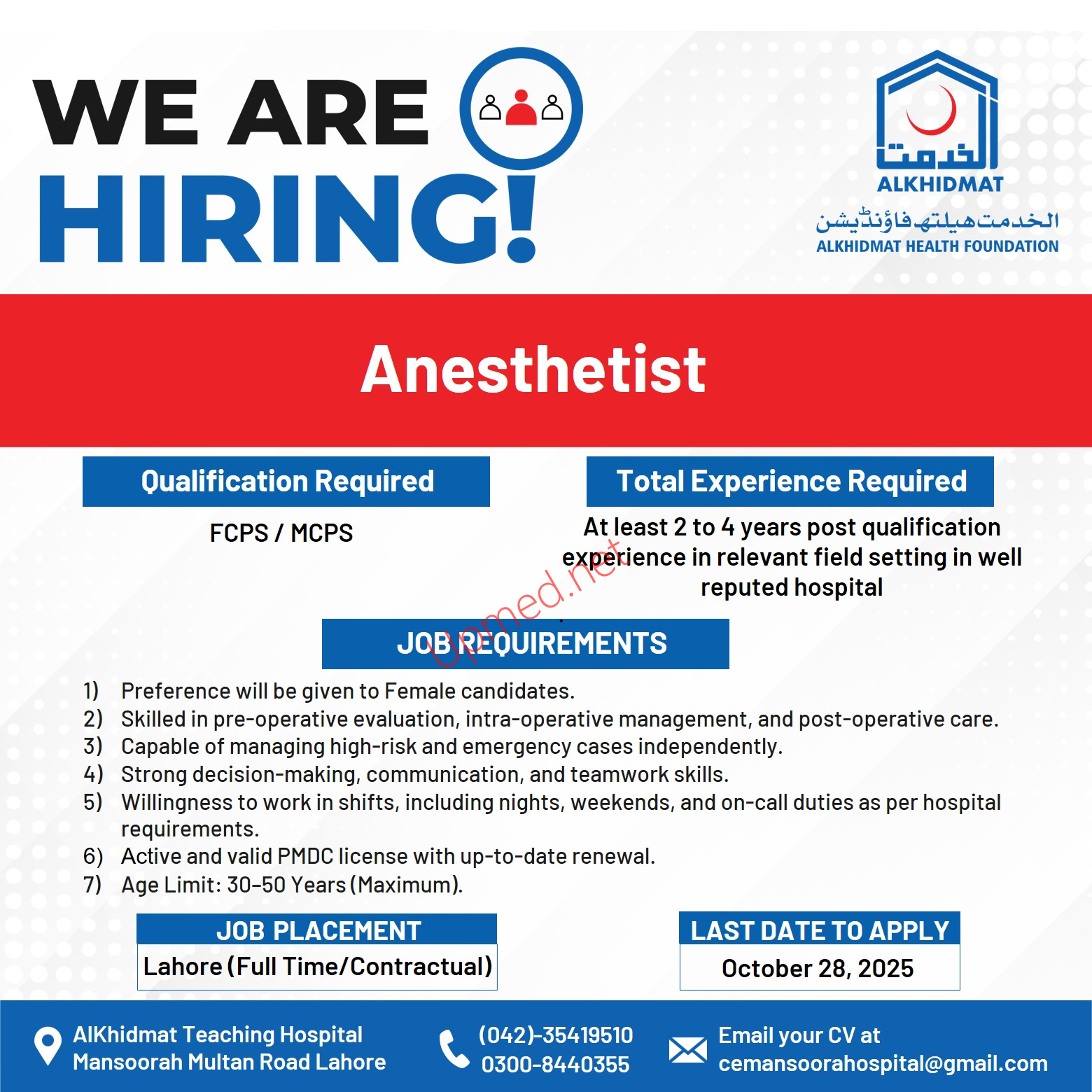 Institutes: AL-Khidmat Teaching Mansoorah Hospital Lahore