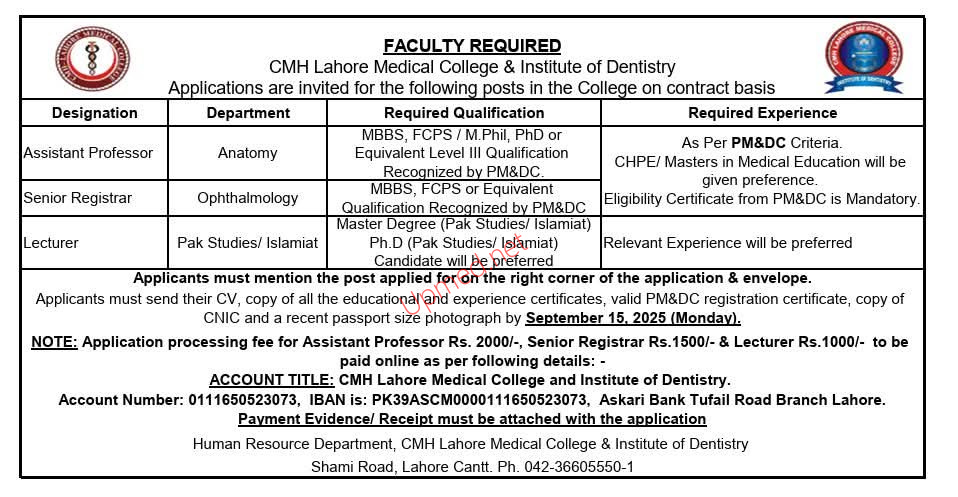 CMH Lahore Medical College & Institute Of Dentistry Lahore