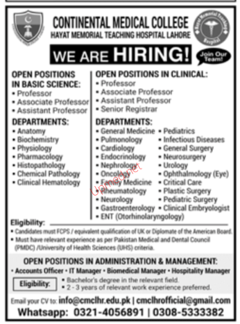 Institutes: Continental Medical College Lahore