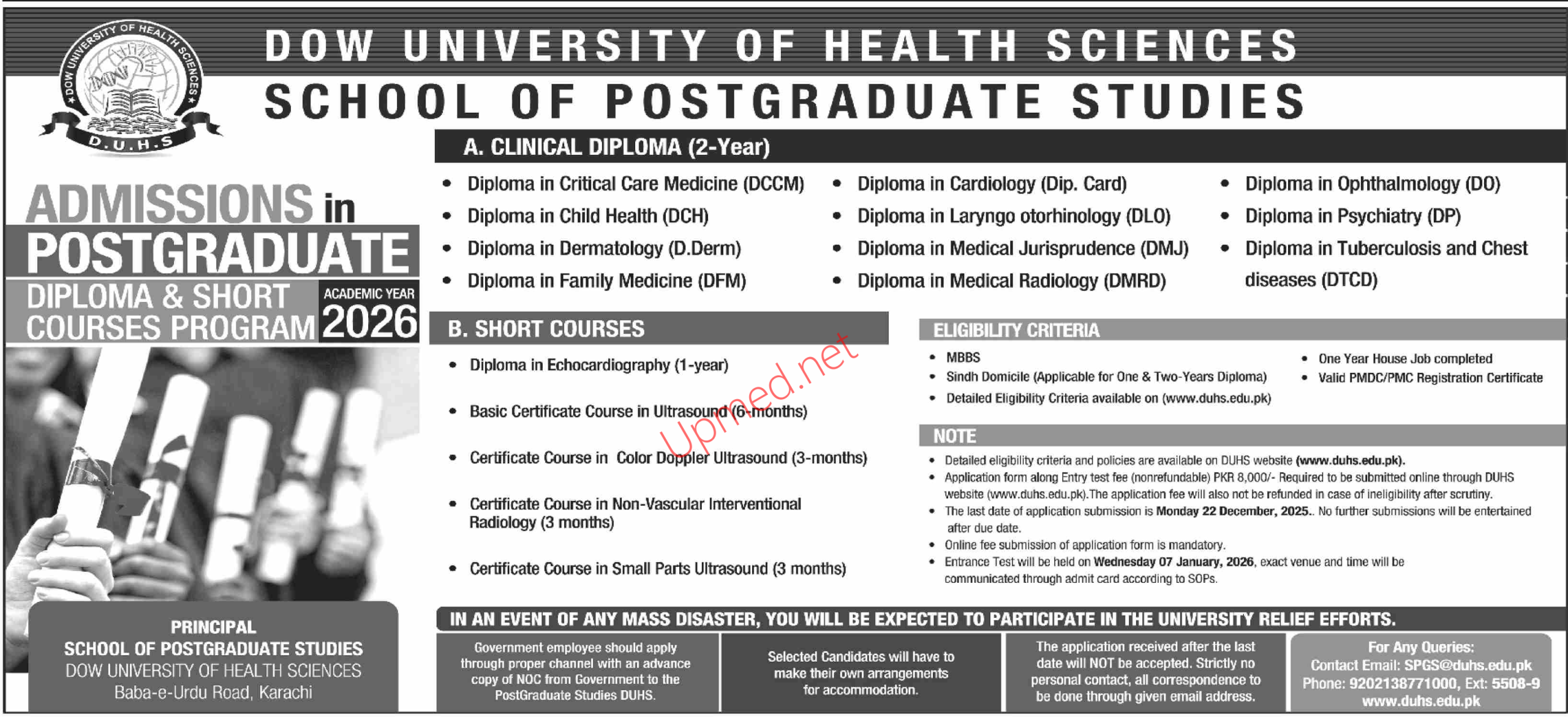 Institutes: Dow University of Health Sciences (DUHS) Karachi