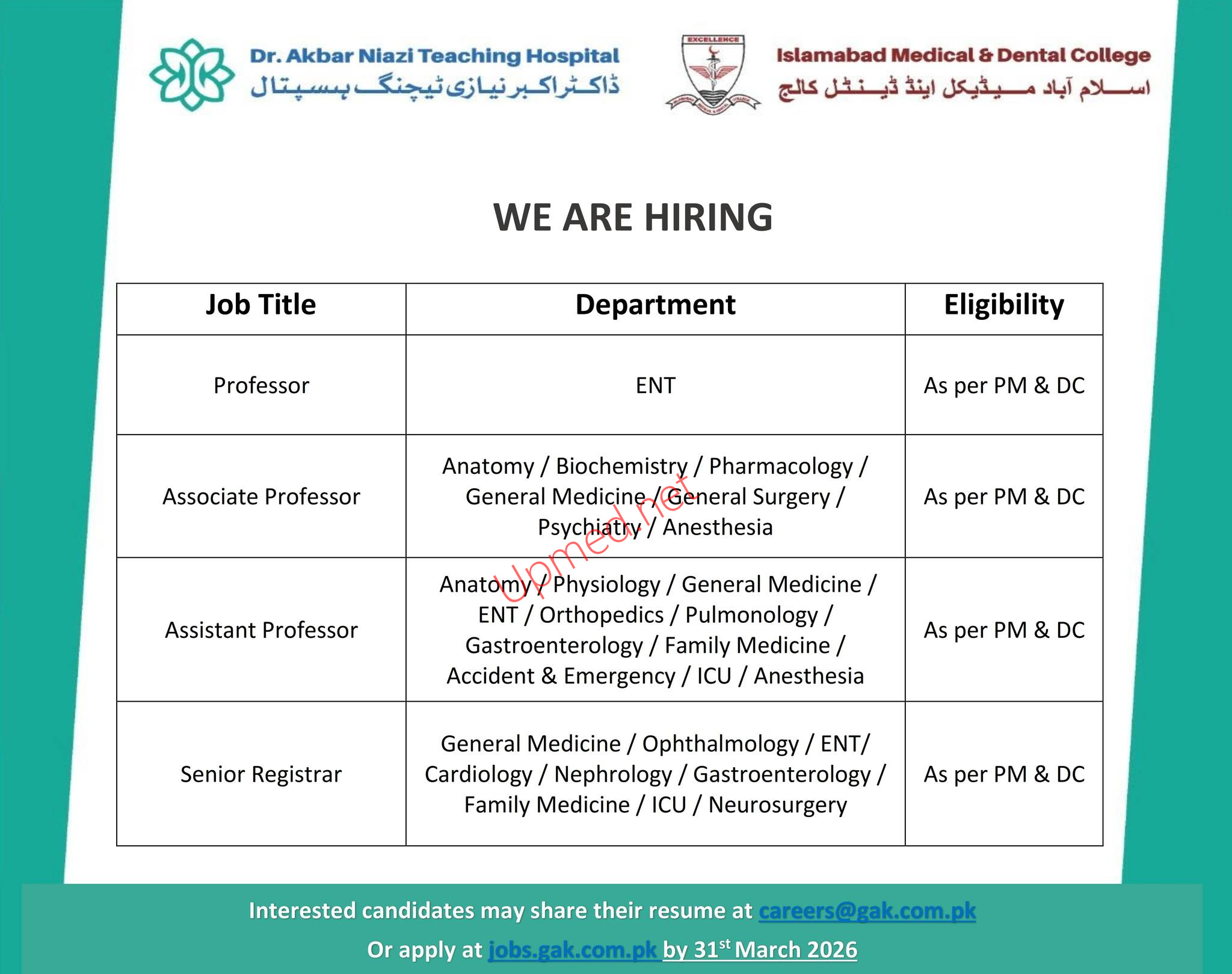 Institutes: Dr.Akbar Niazi Teaching Hospital Islamabad