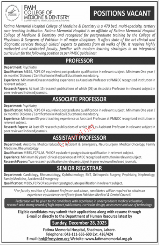 Institutes: FMH College Of Medicine & Dentistry Lahore