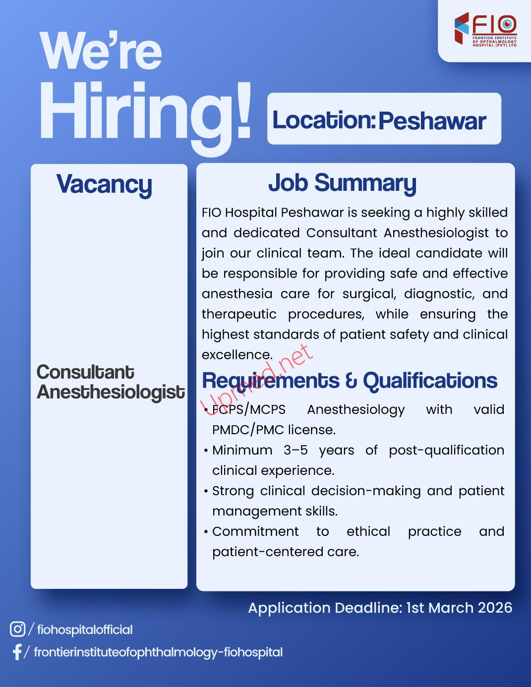 Institutes: Frontier Institute of Ophthalmology FIO Peshawar
