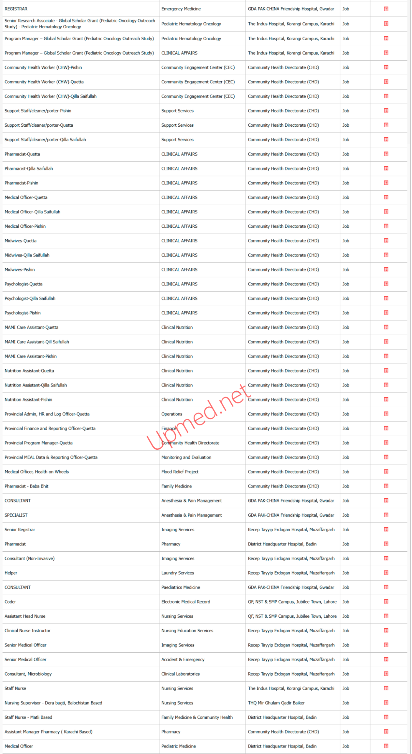 Indus Hospital & Health Network Gwadar / Pishin / Qilla Saifullah / Quetta / Muzaffargarh /Badin