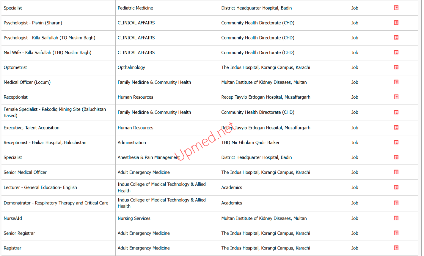 Indus Hospital & Health Network Karachi / Badin / Multan / Rekodiq