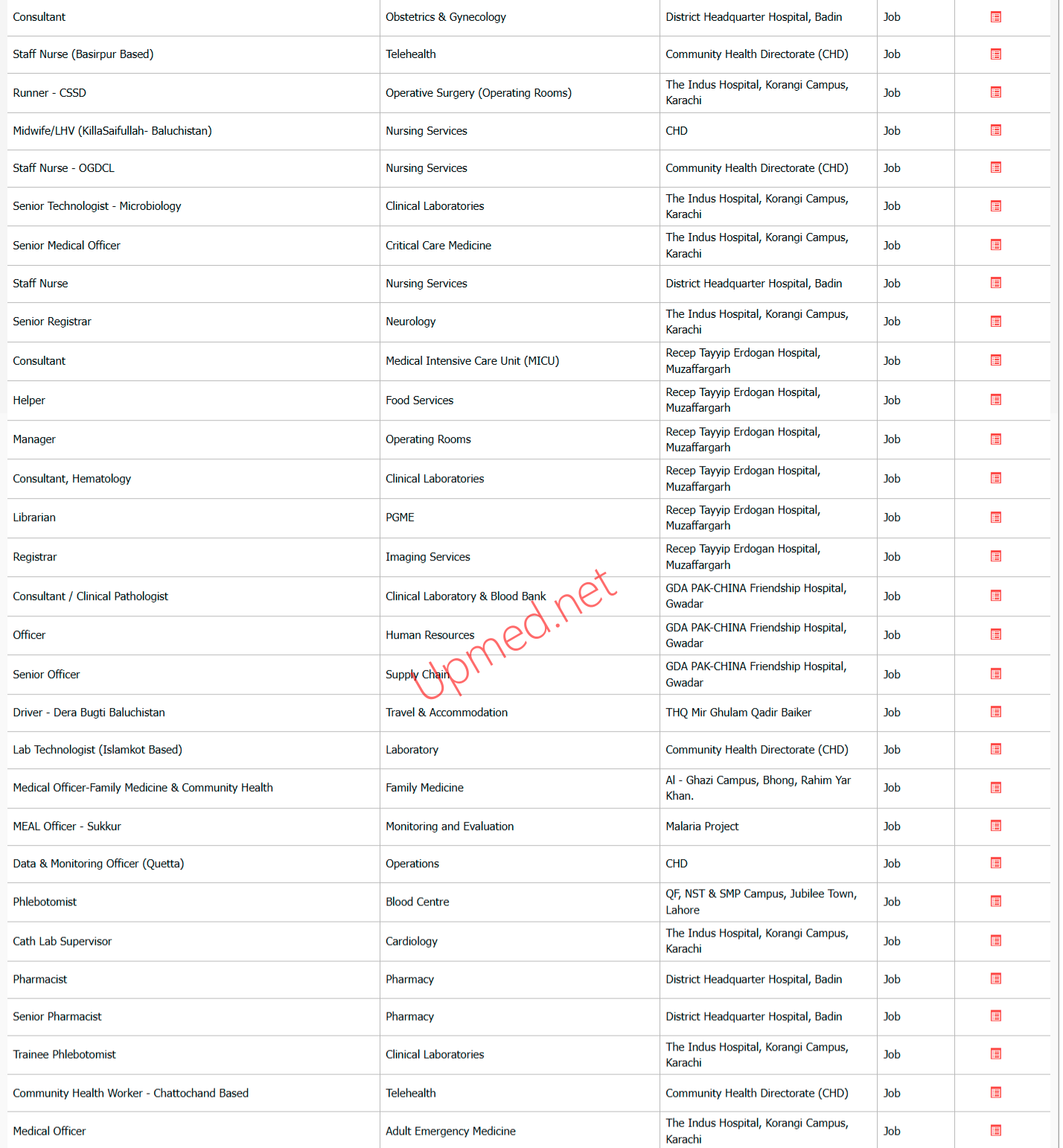 Indus Hospital & Health Network Karachi / Badin / Muzaffargarh / Gwadar / Rahim Yar Khan