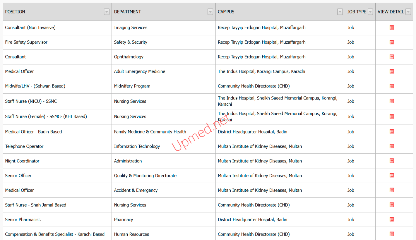 Indus Hospital & Health Network Karachi / Multan / Muzaffargarh / Badin