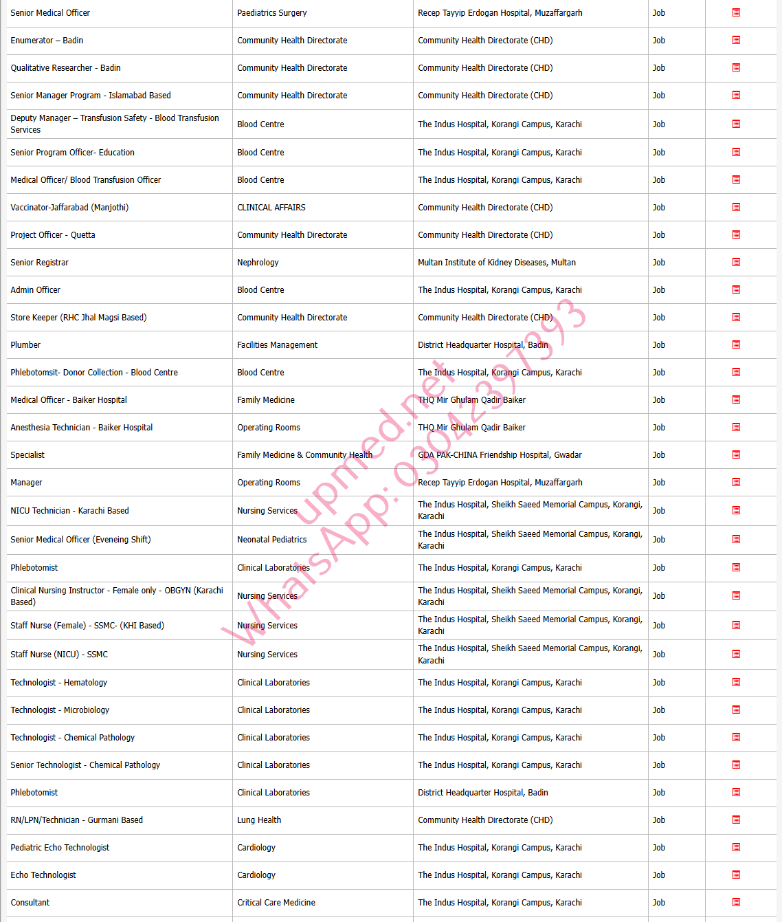 Indus Hospital & Health Network Karachi / Multan / Muzaffargarh / Baiker / Gwadar