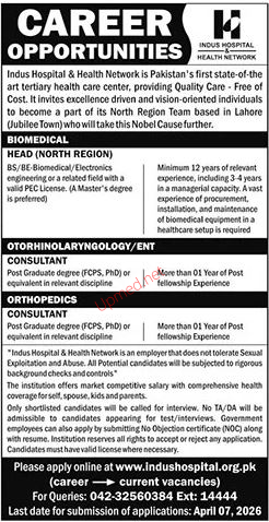 Institutes: Indus Hospital & Health Network Lahore