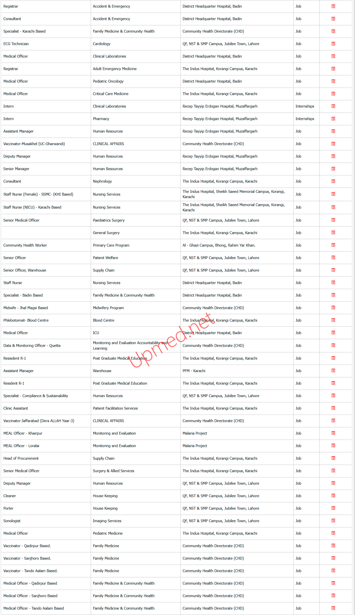 Indus Hospital & Health Network Lahore / Badin / Karachi / Tando Aalam / Sanjhoro / Qadirpur