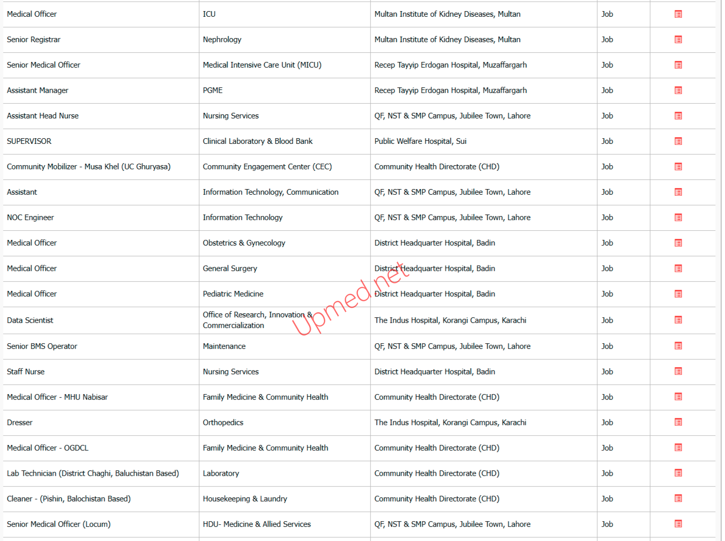 Indus Hospital & Health Network Muzaffargarh / Multan / Badin / Nabisar / Lahore