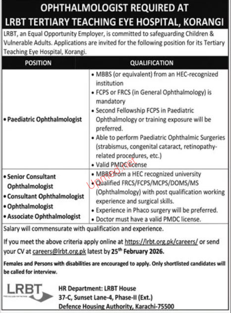 Institutes: LRBT Tertiary Teaching Eye Hospital Karachi