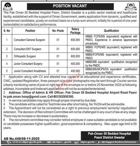 Institutes: Pak Oman Hospital Pasni