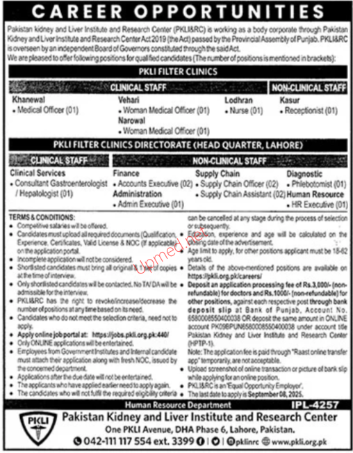 Pakistan Kidney & Liver Institute and Research Center Lahore / Vehari / Khanewal / Narowal