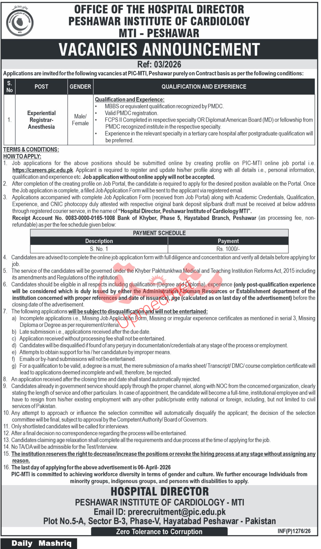 Institutes: Peshawar Institute Of Cardiology Peshawar