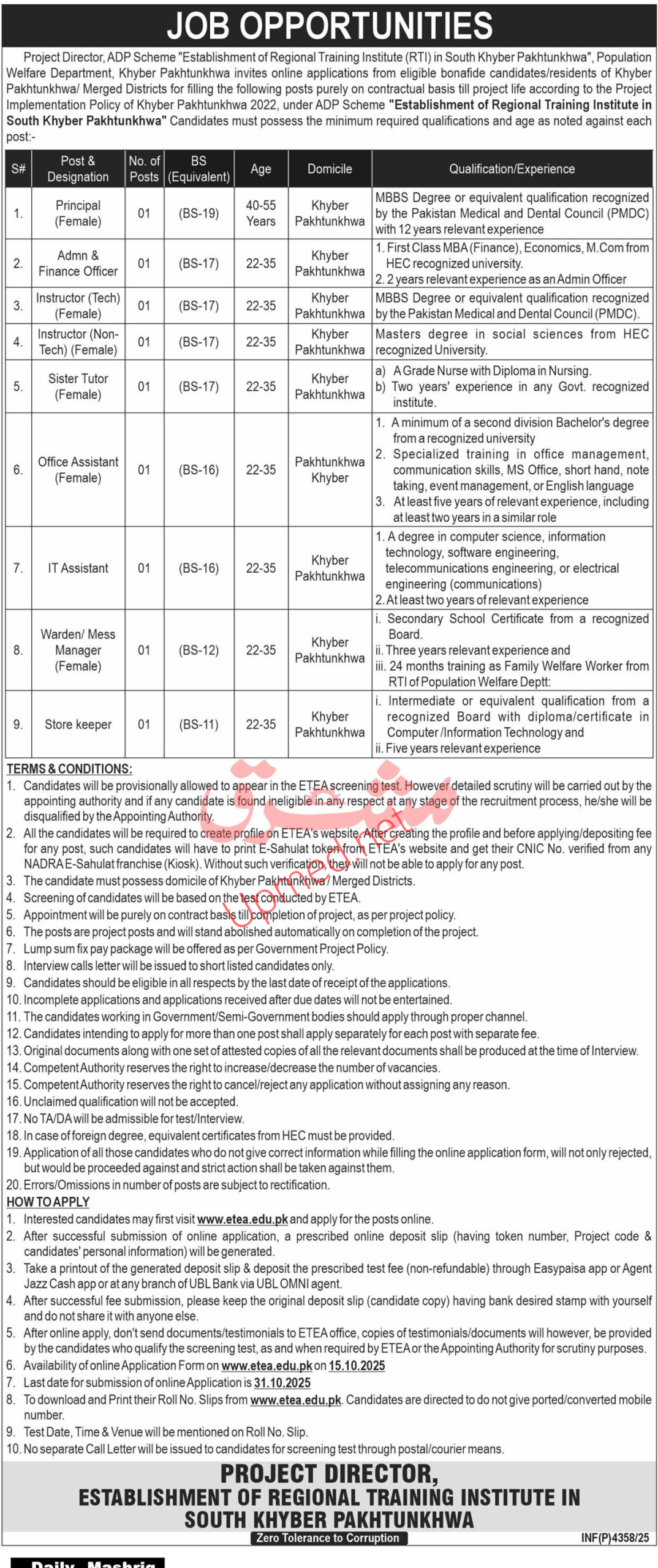 Institutes: Population Welfare Department Khyber Pakhtunkhwa