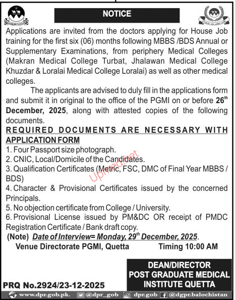Institutes: Postgraduate Medical Institute Quetta (PGMI)