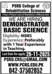 Institutes: PSRD College of Rehabilitation Sciences Lahore