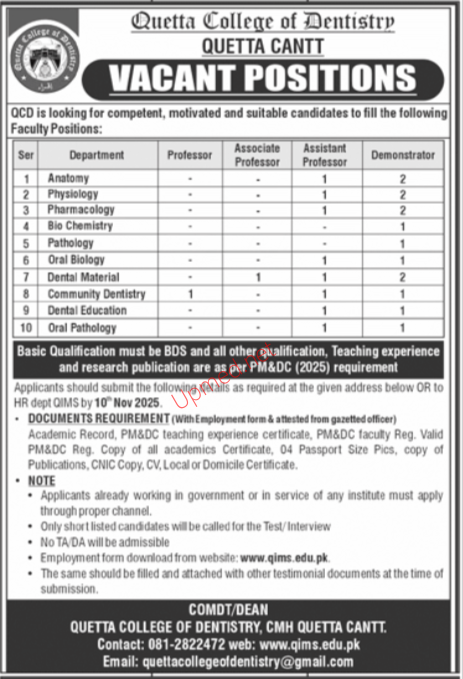 Institutes: Quetta College of Dentistry Quetta