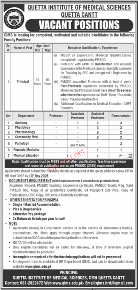Institutes: Quetta Institute of Medical Sciences Quetta