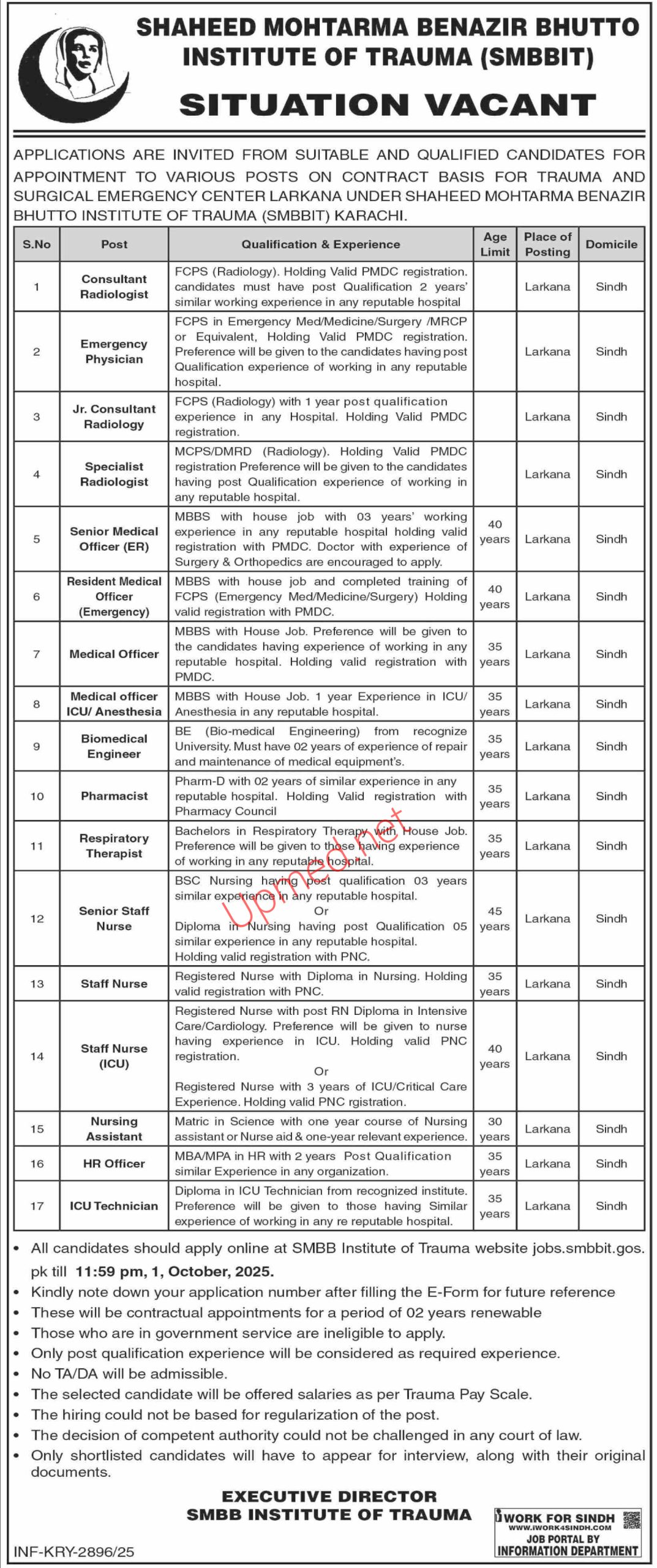 Place of Posting is Larkana.
