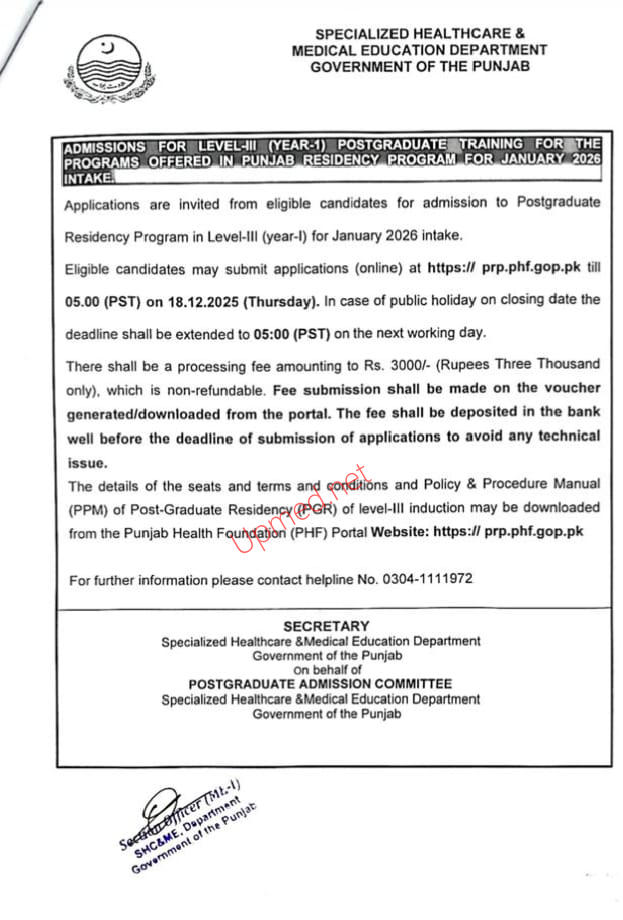 Specialized Healthcare & Medical Education Department Punjab