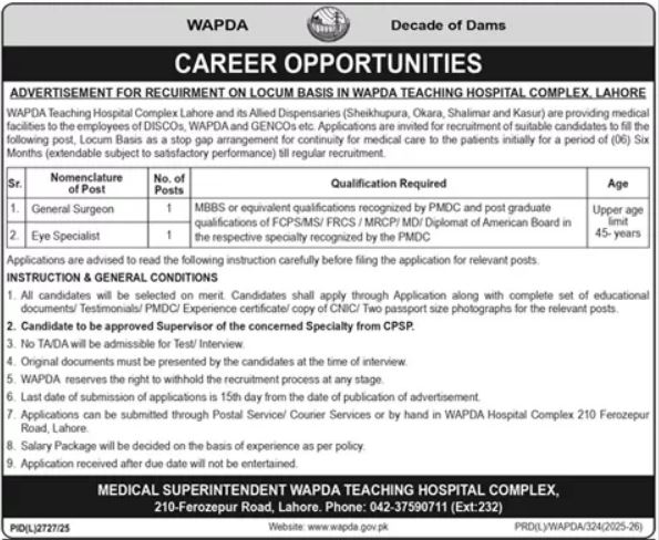 Institutes: Wapda Teaching Hospital Complex Lahore